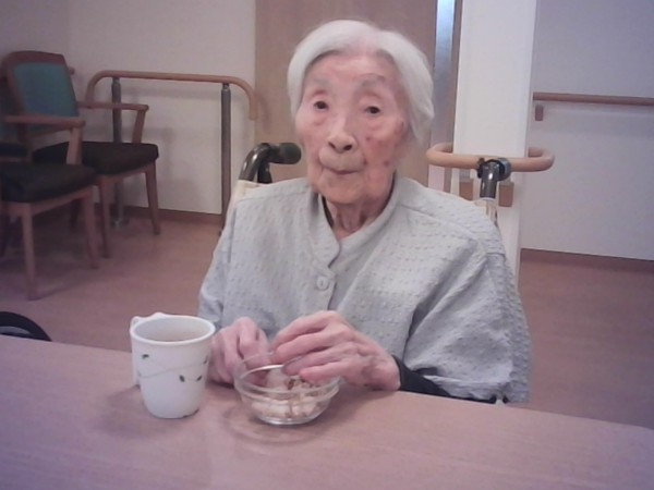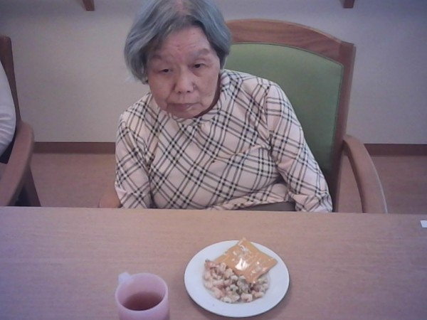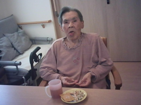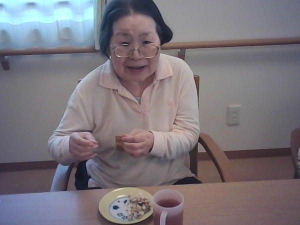 では1階と2階で揚げ餅をおやつに召し上がった様子をご覧ください(^_-)-☆