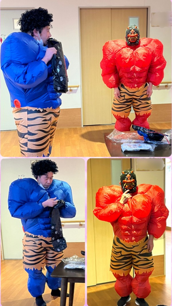 準備を終え、皆さまのもとへ一歩一歩近づく赤鬼と青鬼‥