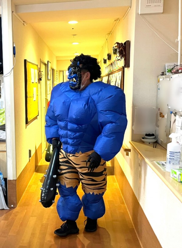あまりのリアルな鬼お面に『キャー』と驚く利用者様ですが