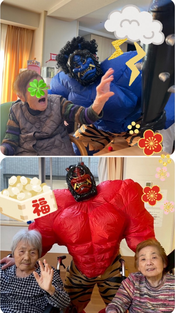 青鬼役のT職員さん、赤鬼役のK職員さん