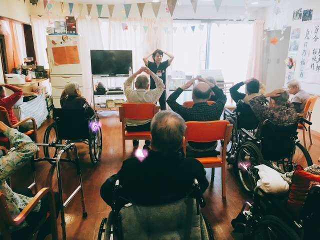 職員も毎日行っている成果もあり皆様の前に出て体操もすることも大分慣れてきました!