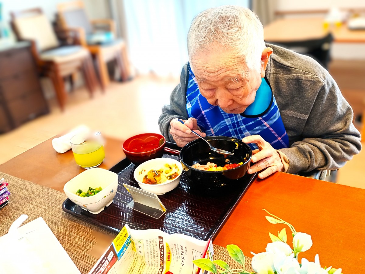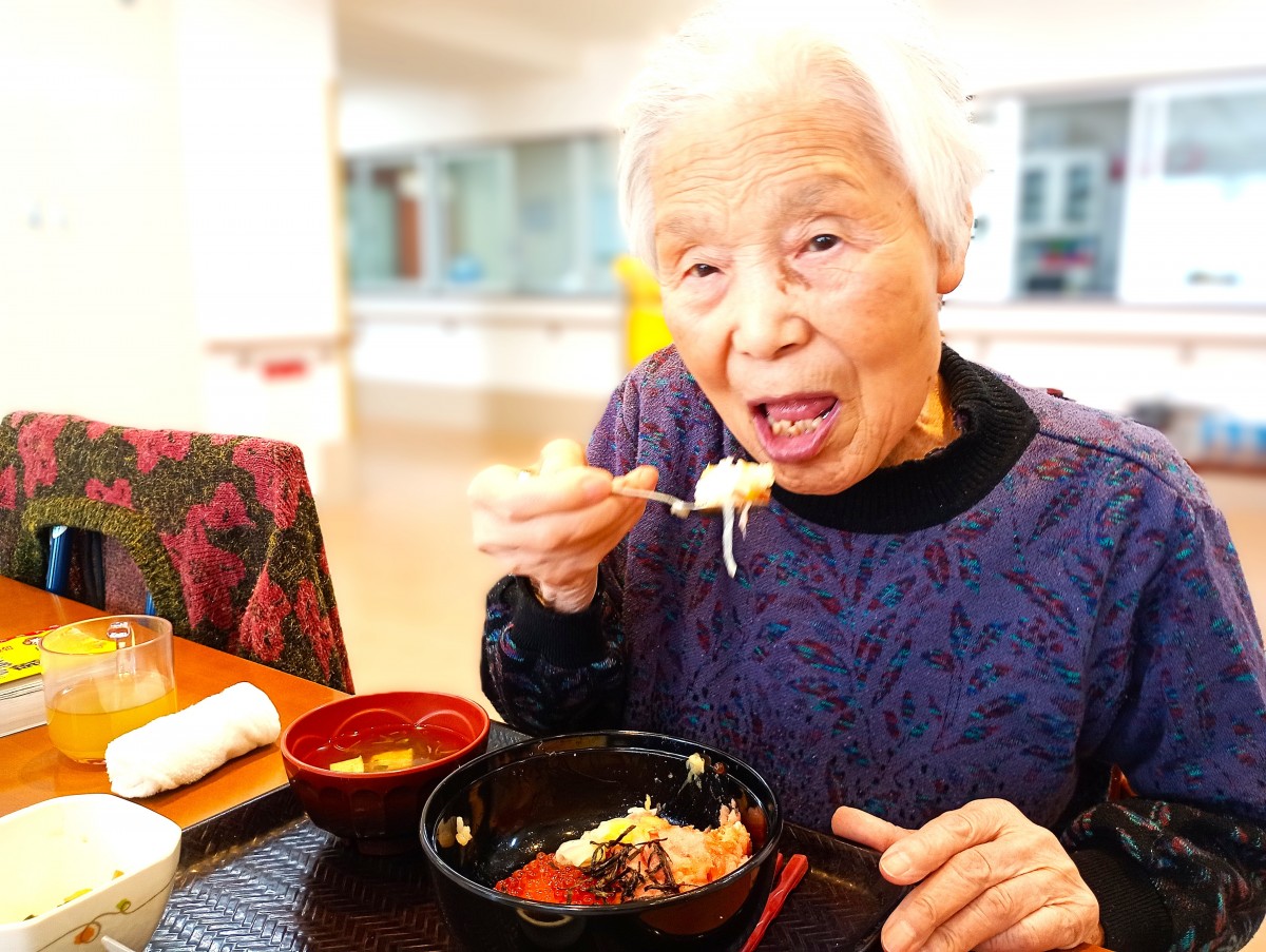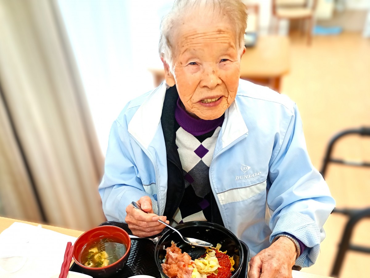 ご利用者様は皆大好きな海鮮二色丼を食べて食欲あり、