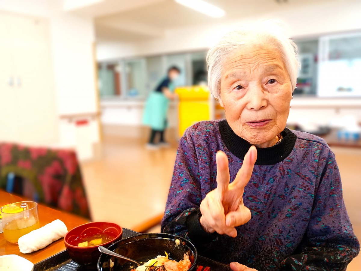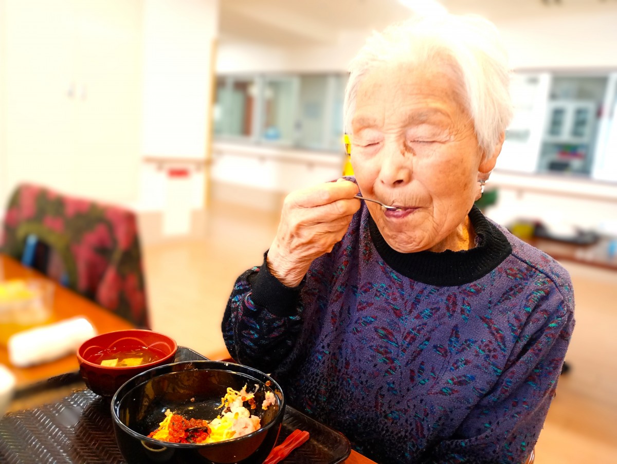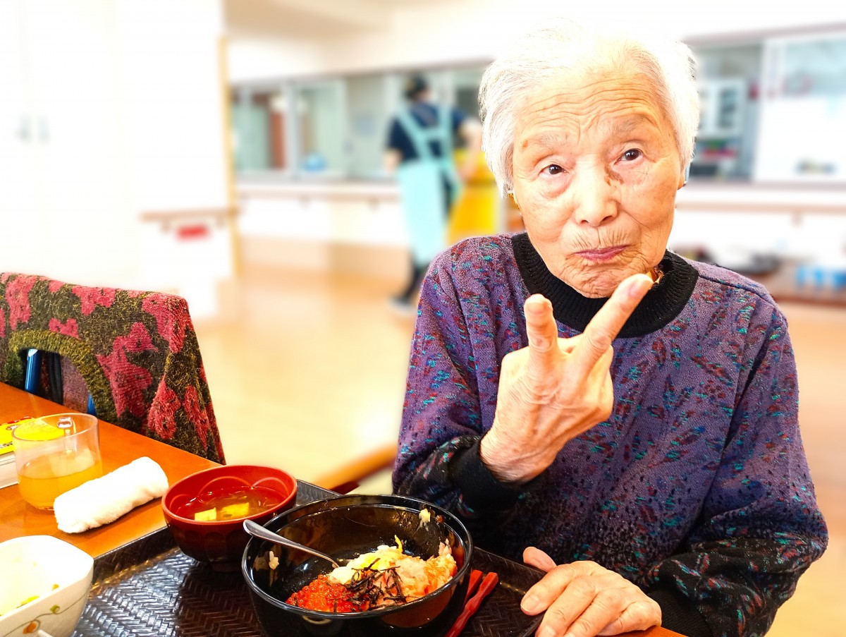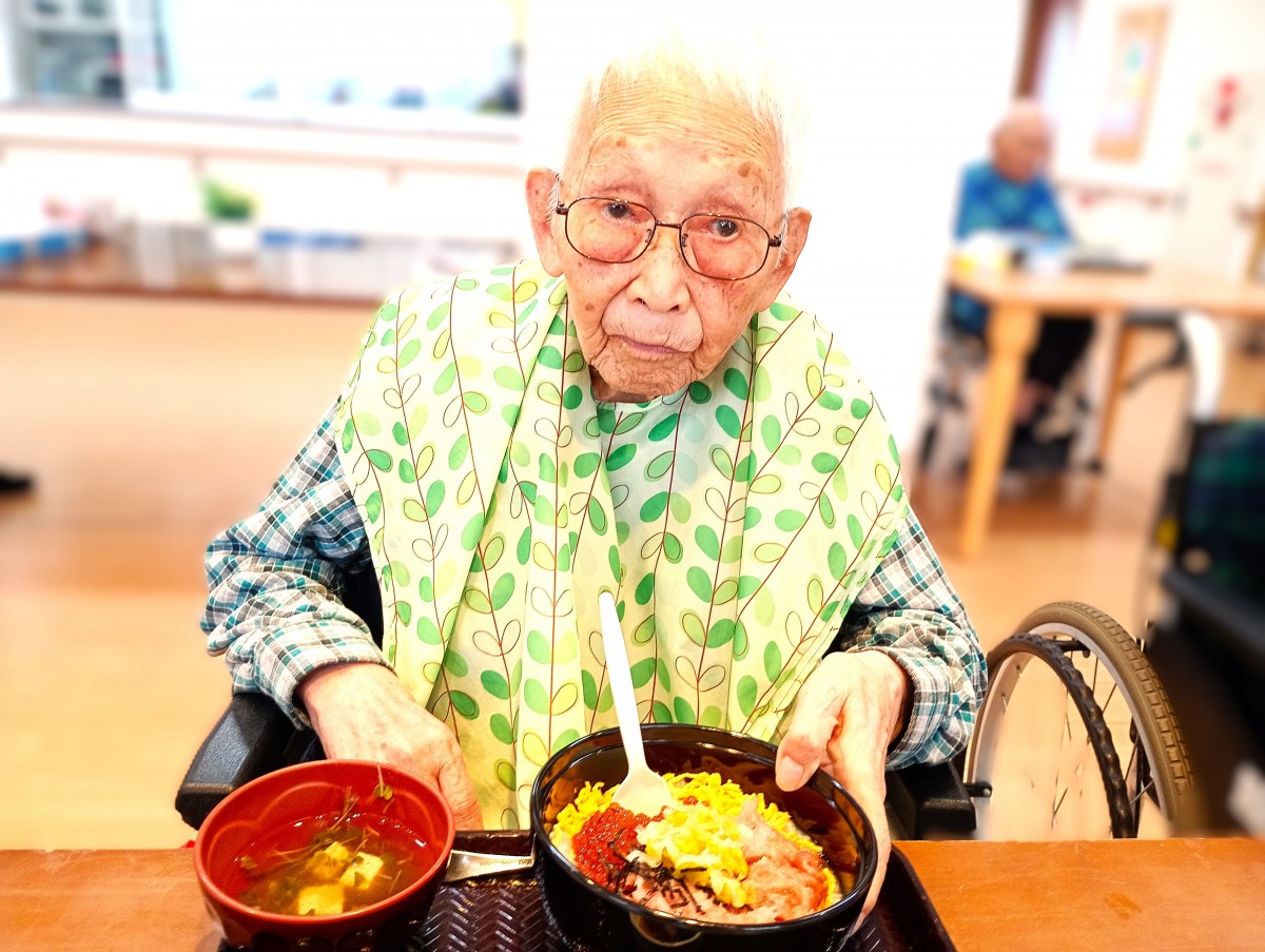 ご利用者様は皆大好きな海鮮二色丼を食べて食欲あり、