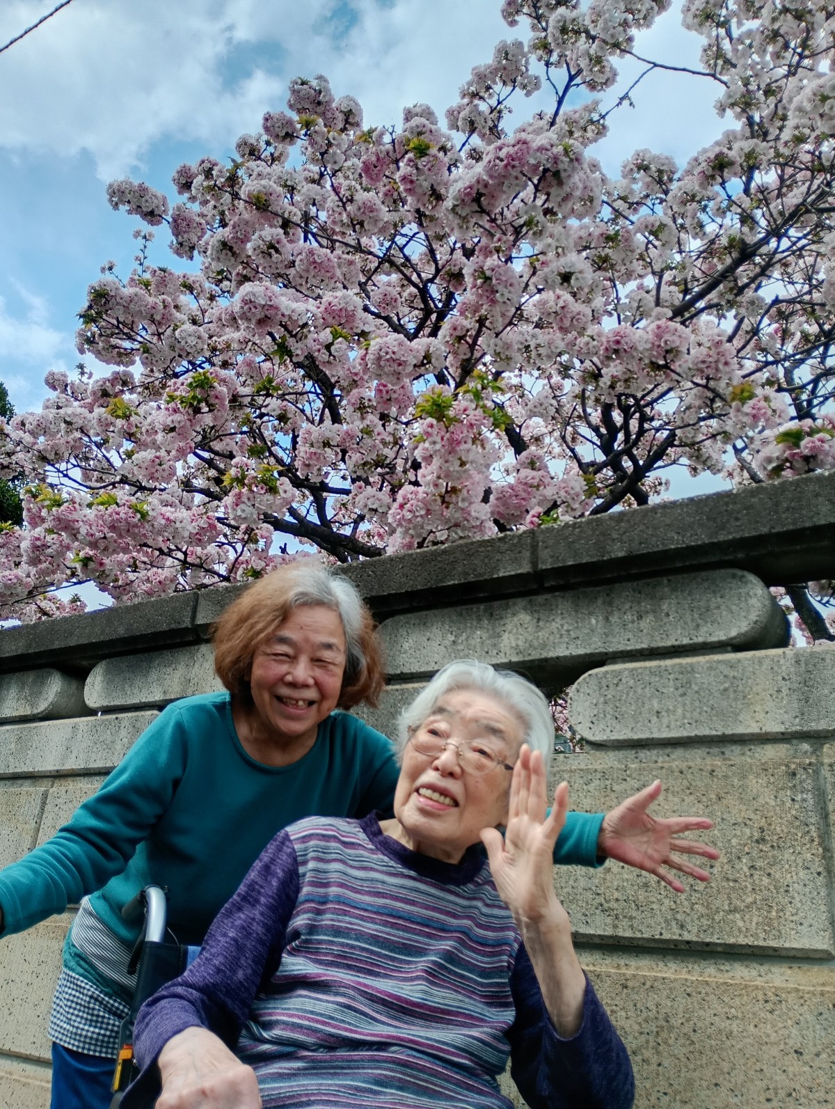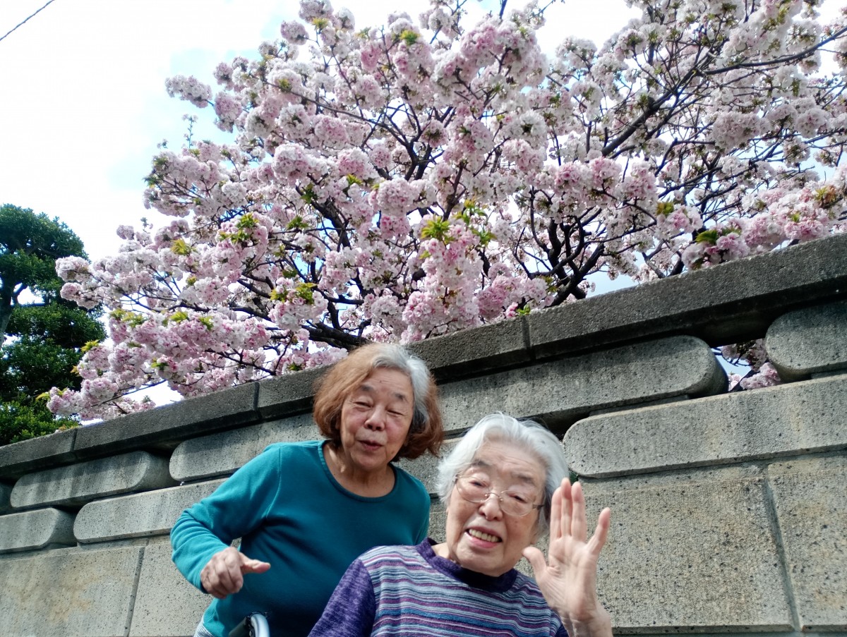 満開の桜を見て、ご利用者様も「綺麗~綺麗♪」と満面の笑顔(*^^)v