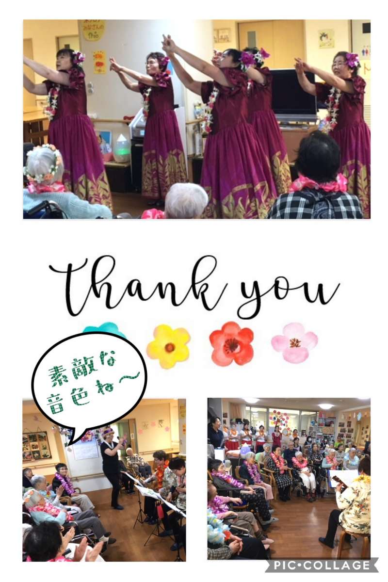 ご利用者様も演奏中はフラダンスのポーズをしたりとっても楽しまれておりました♪