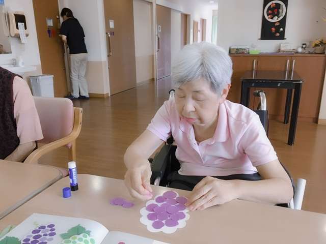 9月に入り季節の変わり目になるので、ご利用者様に『ブドウ』の壁紙作りにご協力頂きました(*^_^*)