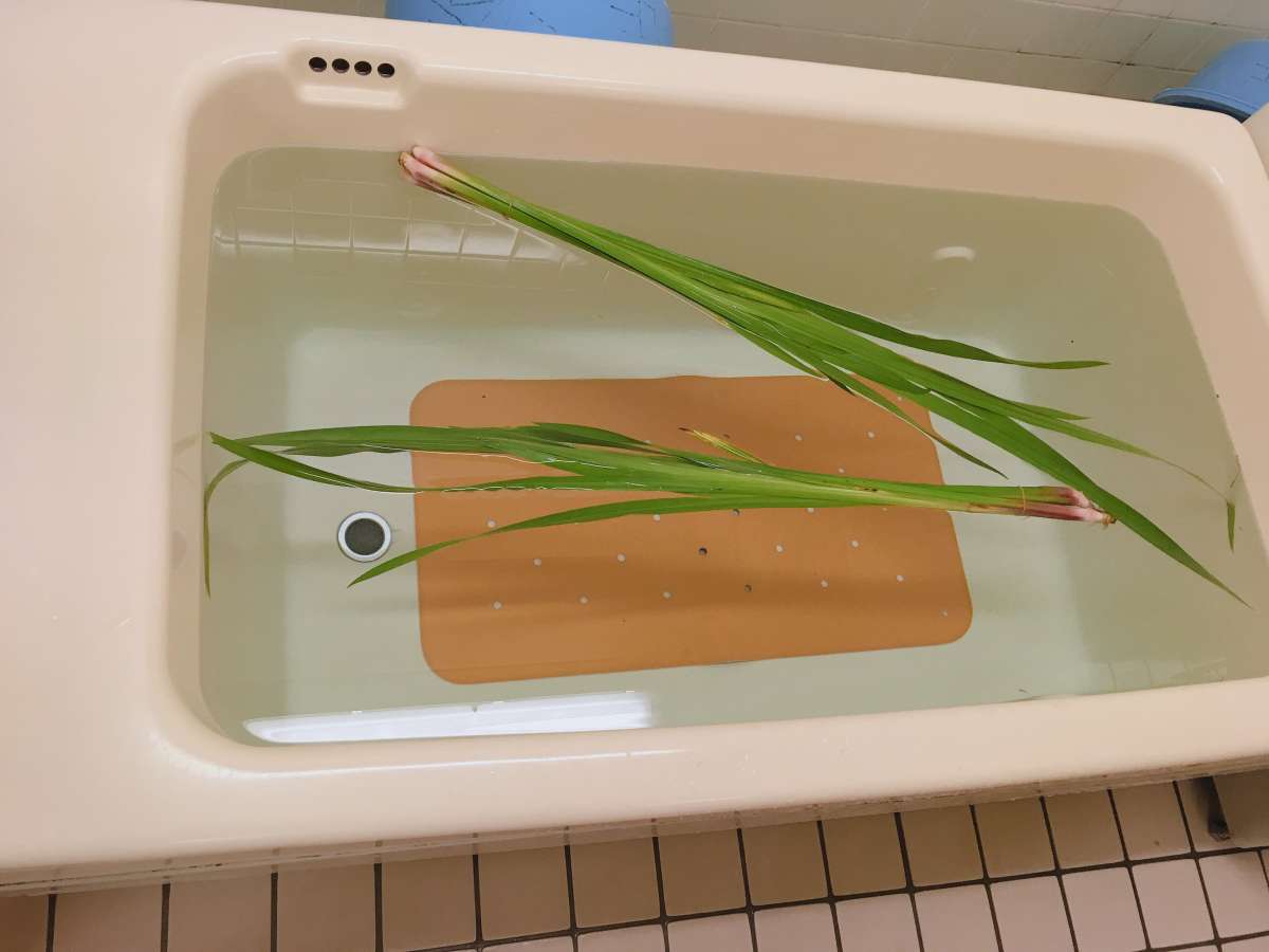 菖蒲が浮いている浴槽を皆様がみて「まあーこんな時期なのー」など顔がほころんでいました!