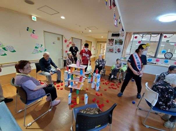 各チーム無事にピンポン玉がゴールに辿り着きました。
