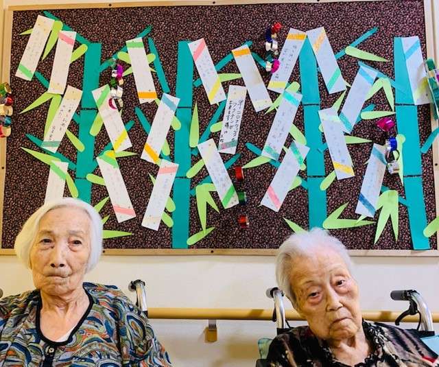 レクリエーションの時間に、『今日は七夕の日ですね~!』と職員の掛け声からはじまり、皆さんで【たなばたさま】を熱唱♪♪