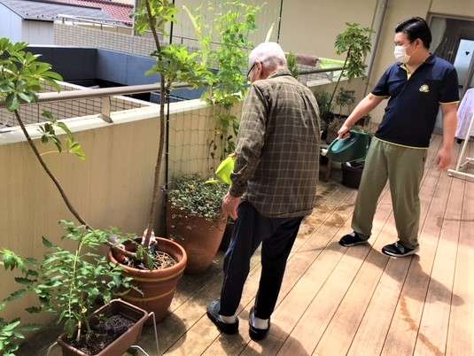 ウッドデッキの植物さん達に水をやる事が出来ました!