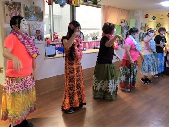 午後の一発目は職員によるフラダンスの披露です。