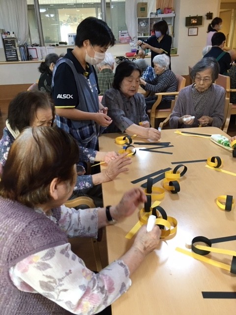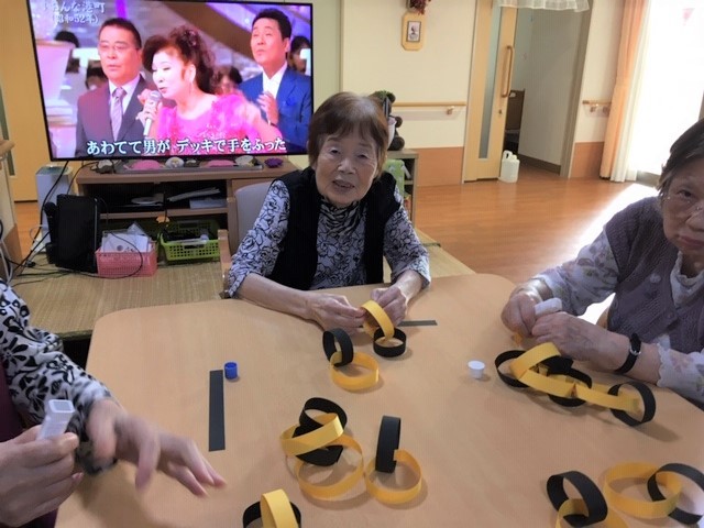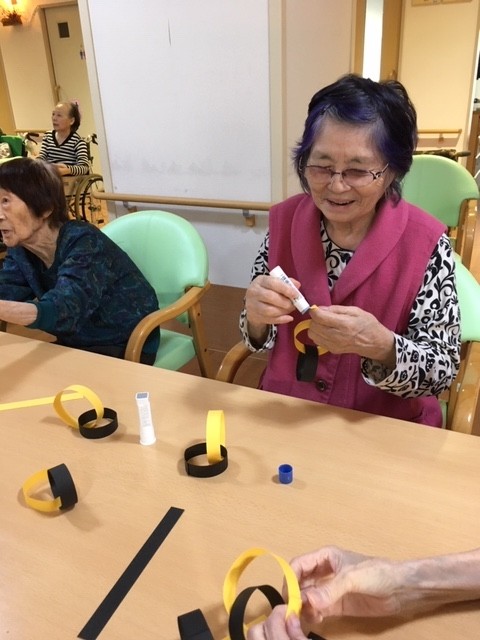 先日は、画用紙を細くしたものを輪っかにし、つなぎ合わせました(^▽^)/♪