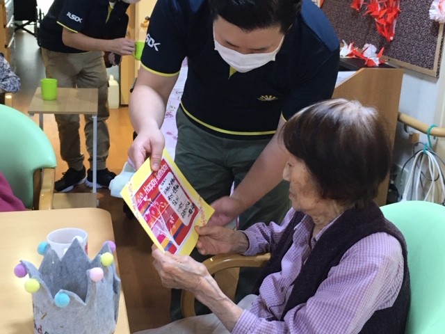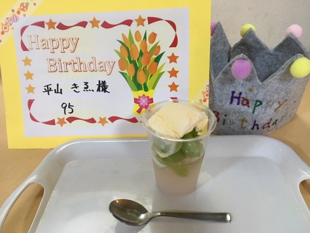 この、シャインマスカットが届いた時期にちょうど、95歳の誕生日をお迎えになる方がいらっしゃったので、一緒にお祝いさせて頂きました。
