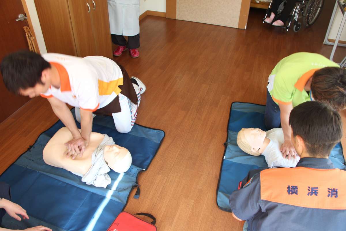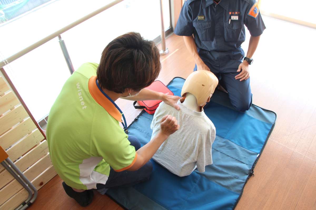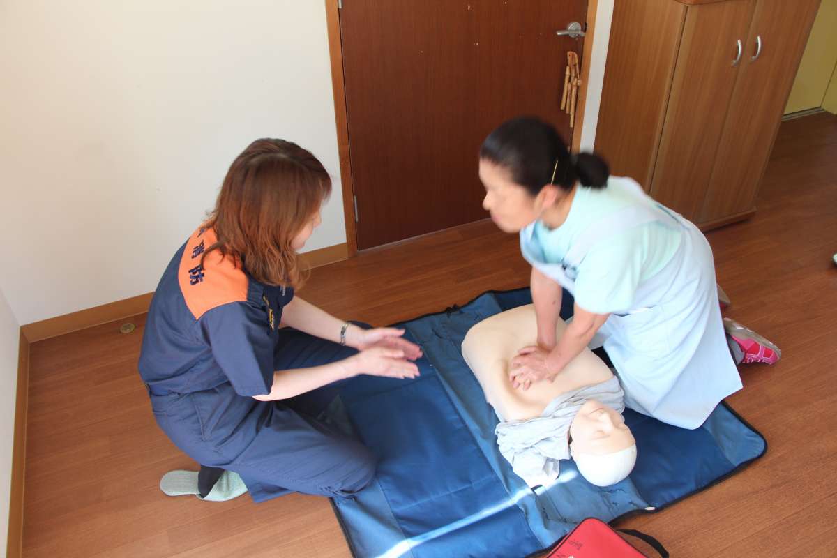 今回は、AEDの使い方と物が詰まったときの対処方法を指導いただきました。