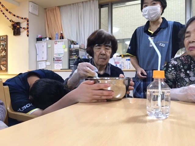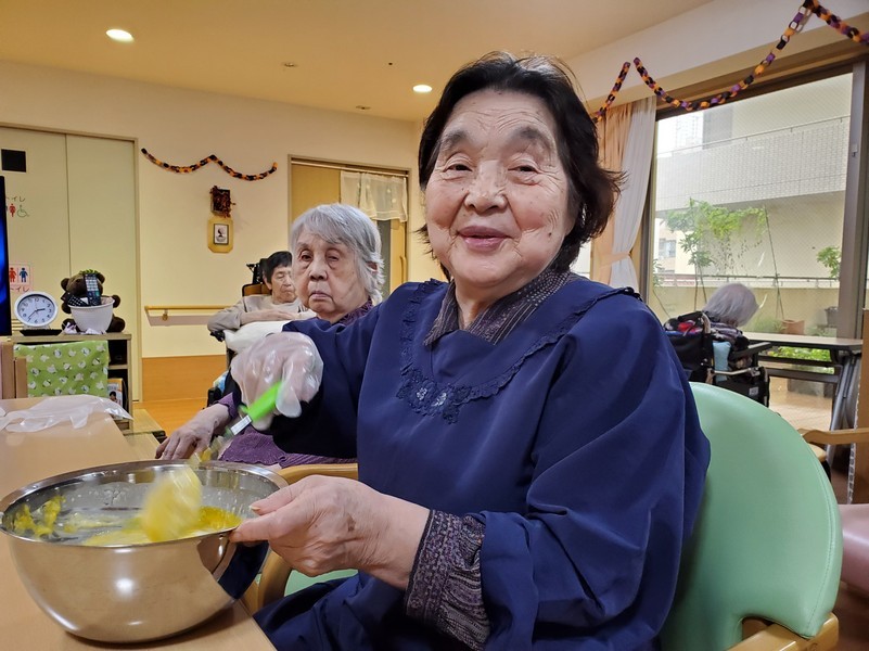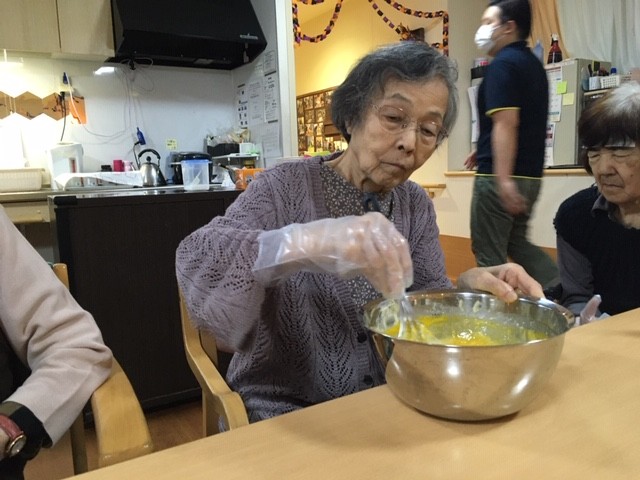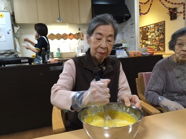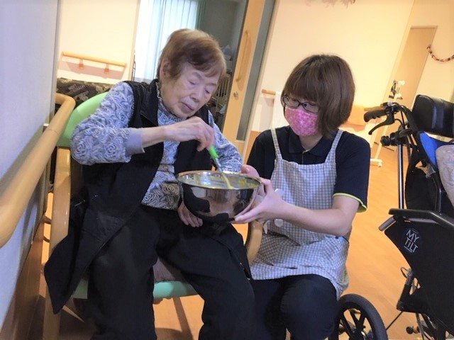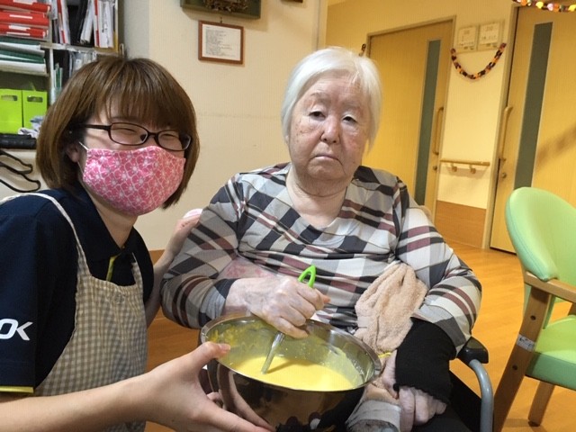 混ぜ仕事は皆さんにおまかせし、焼き仕事は今回職員が行いました(o^―^o)