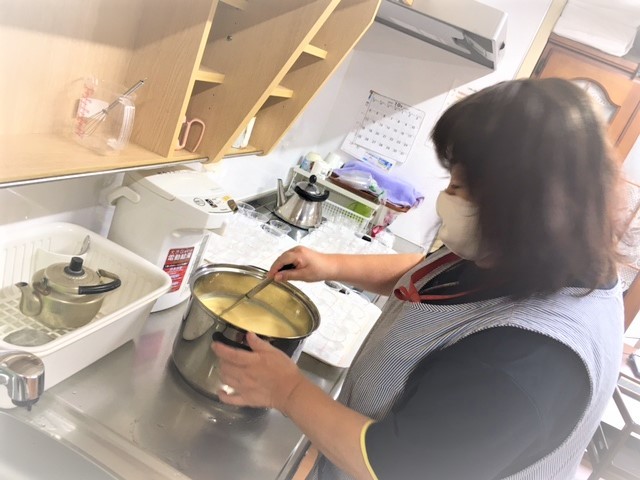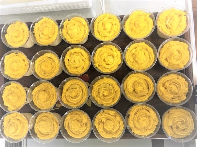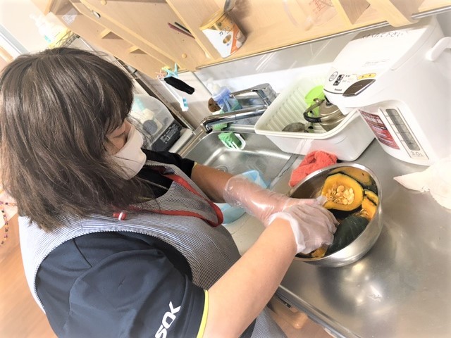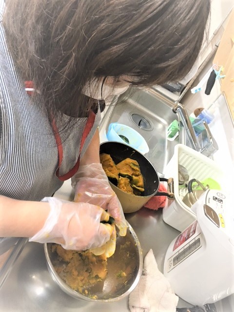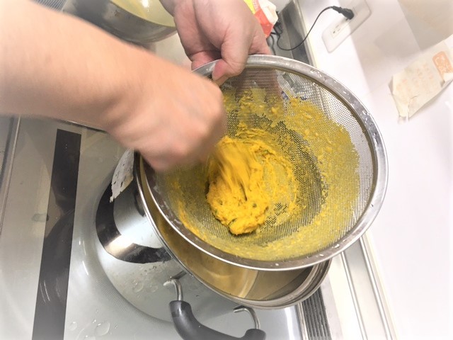 カボチャを切って茹でて裏ごししてペースト状にして...