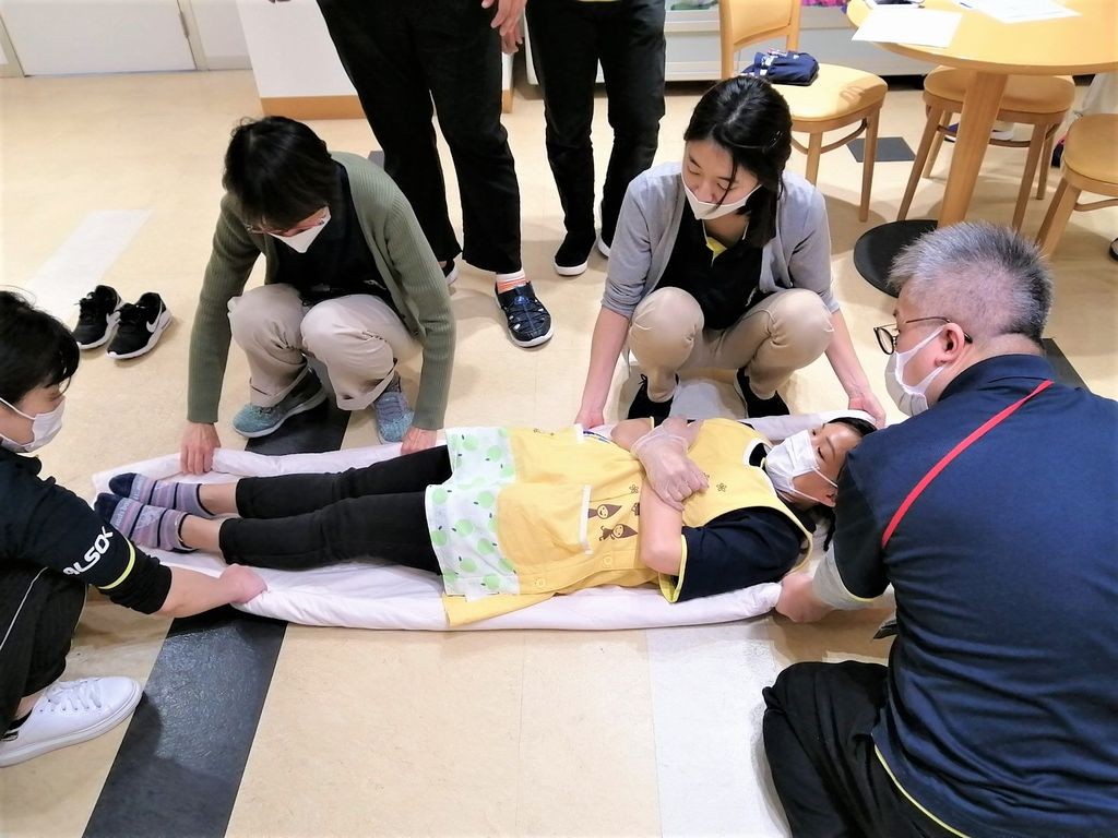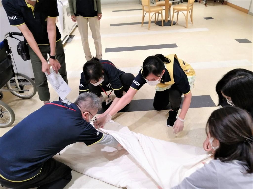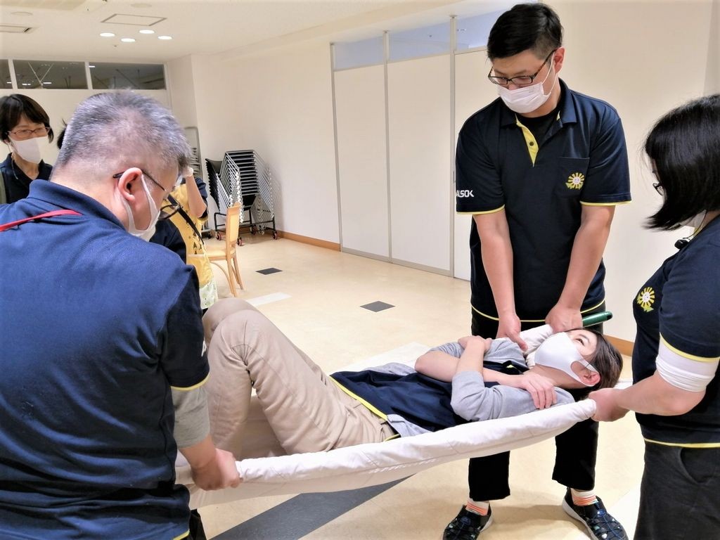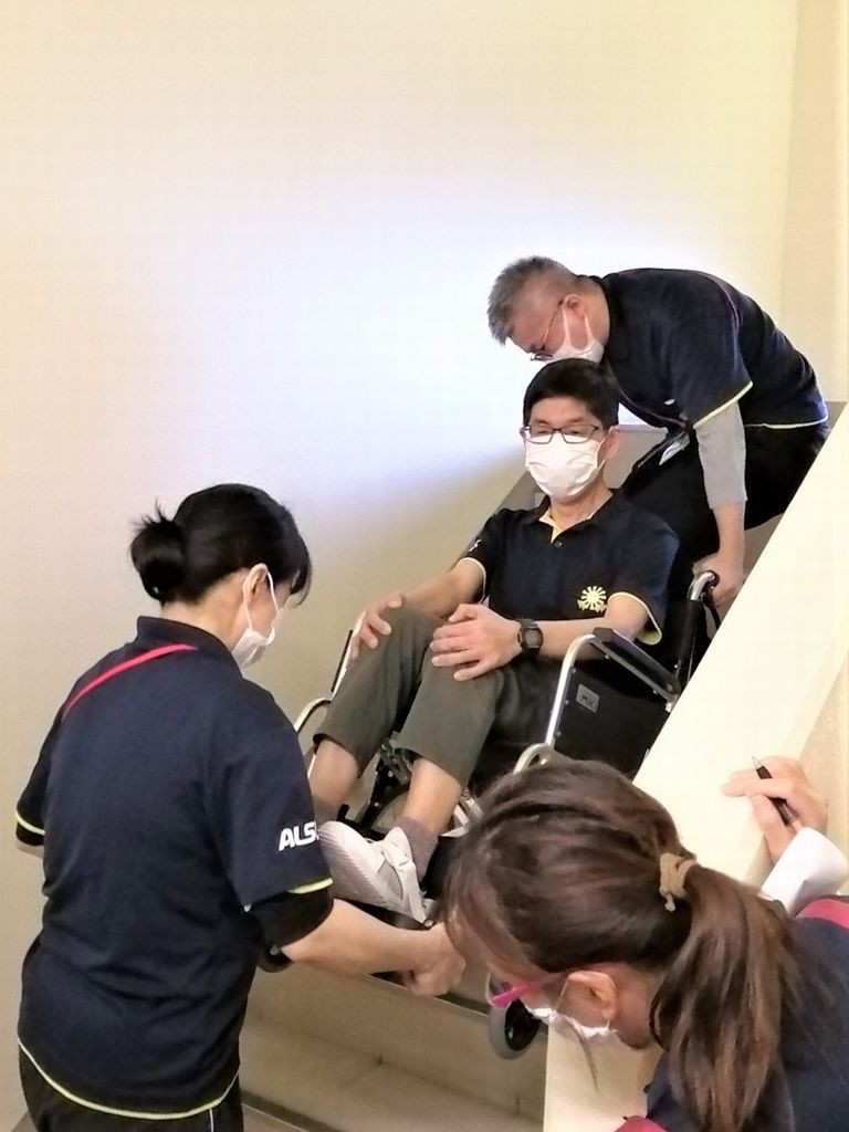 垂直避難では2つの避難方法を職員に体験して頂きました。