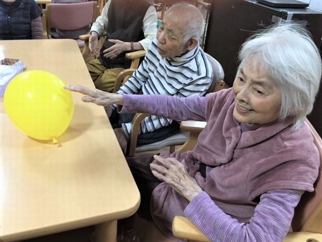 風船を着地させずに、手から手へ繋いでいるだけなのに。