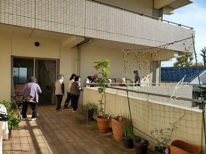 南向きのウッドデッキは、もうすぐ12月とは思えない暖かさ。