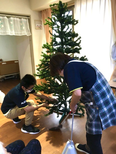 大きなツリーを、運び出し、組み立てて・・・