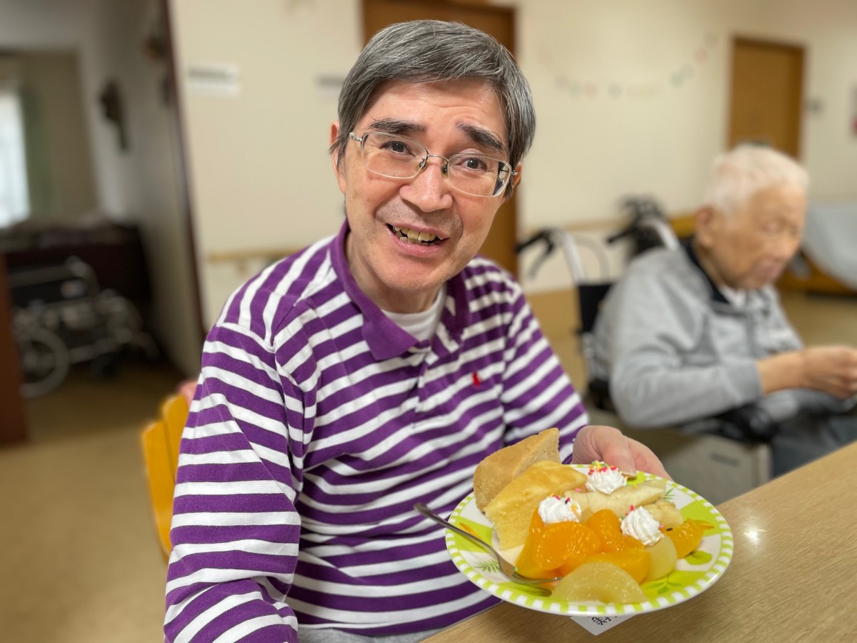 先日に行いました誕生日会で、手作りケーキを食べ大変喜んでくれました!その際のみなさんの満面の笑みです!!