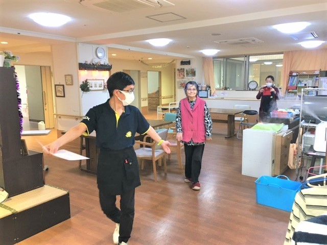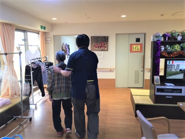 東・南フロアの利用者様の誘導は私(五十嵐)。