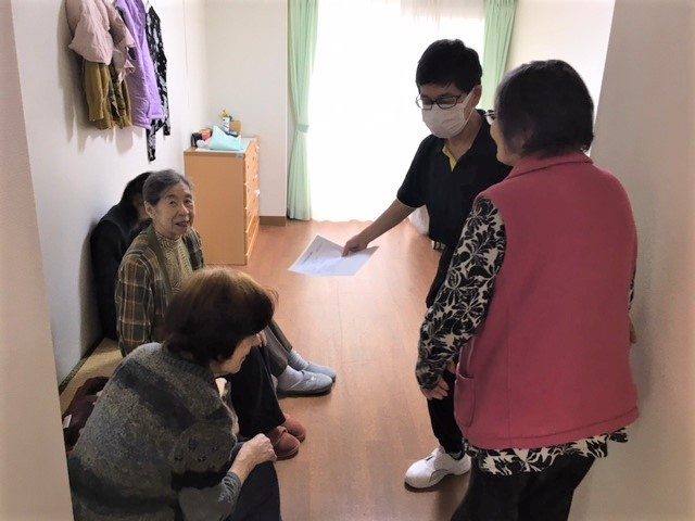今回一緒の夜勤だった私(五十嵐)と梁瀬職員で避難誘導です。