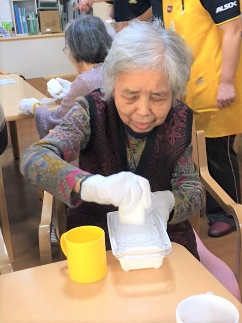 みなさまに固形石鹸を細かくおろして頂いています。