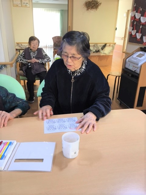 こちらではアマビエに色を塗って頂いています。