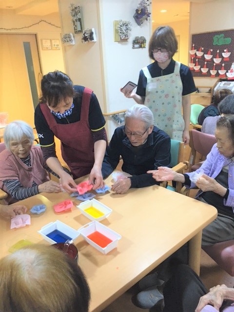 色を付けて形を整えてオリジナル石鹸を作ります。