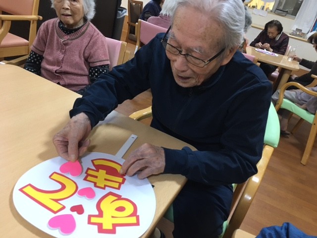 先日みんなで作ったデコレーションうちわや、ポンポンを持って気合十分です!