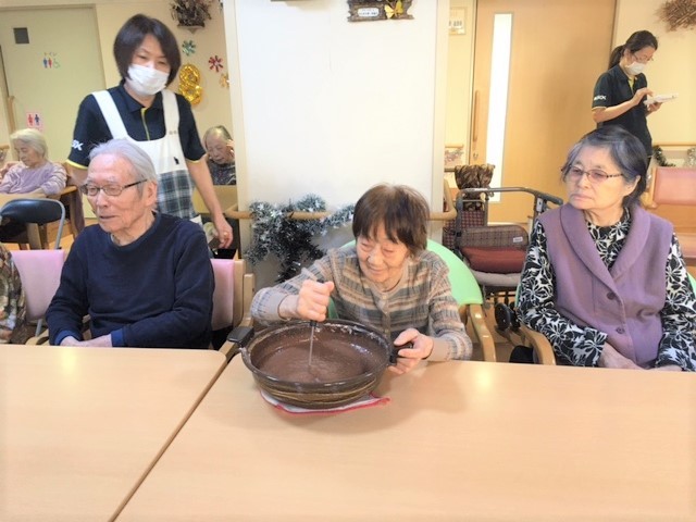 まずは鍋やボールにホットケーキミックスを入れみんなでかき混ぜます。
