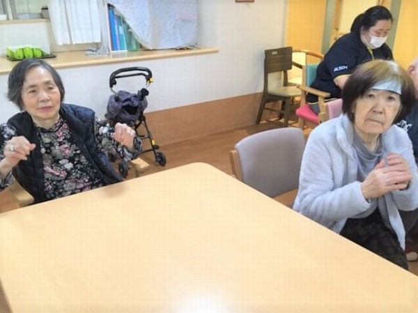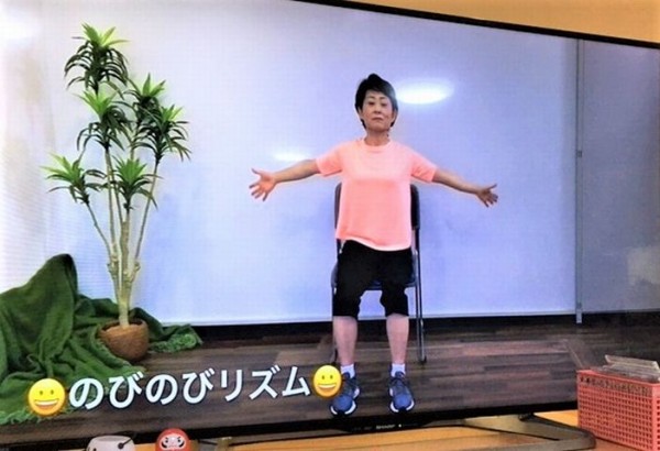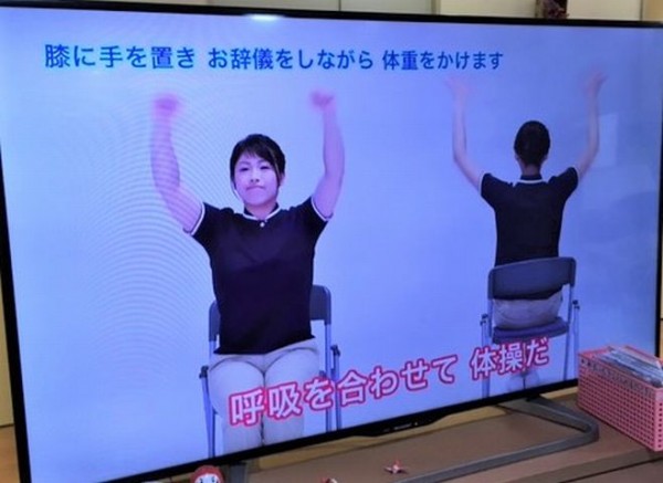ビデオや音楽をかけ職員が前に出て体操の合図をすると、