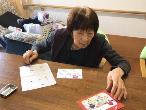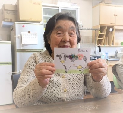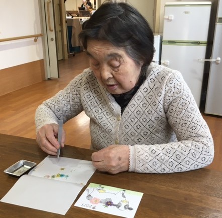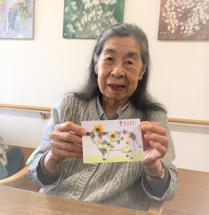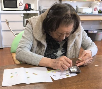 それなのに、ご入居者様たちは普通にピンセットを持ち、普通に押し花に糊付けをし、普通に牛さんを彩っていくのです!!