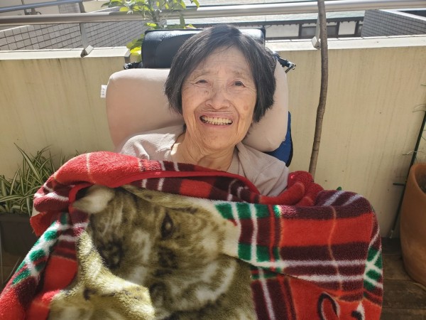 膝を少し痛くされている方に「日の光を沢山浴びておいてね!」と声をおかけしたところ、膝を出し日光浴をされておりました!