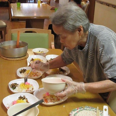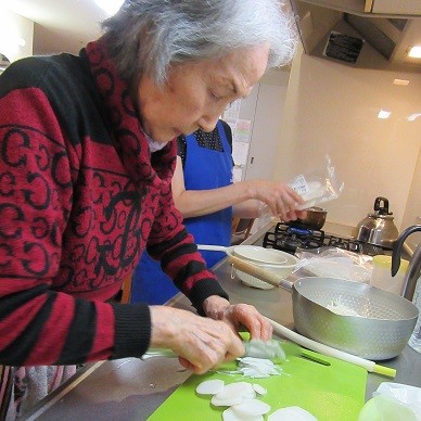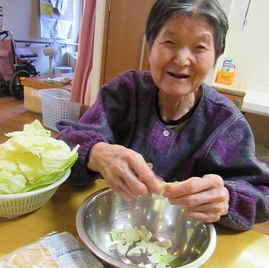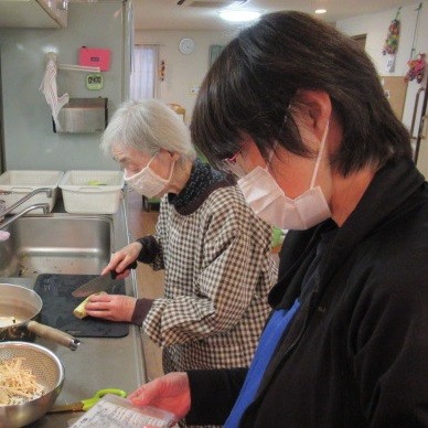 グループホームかたくりの里六郷では食事の多くをご入居者様とスタッフで一緒に作っています。