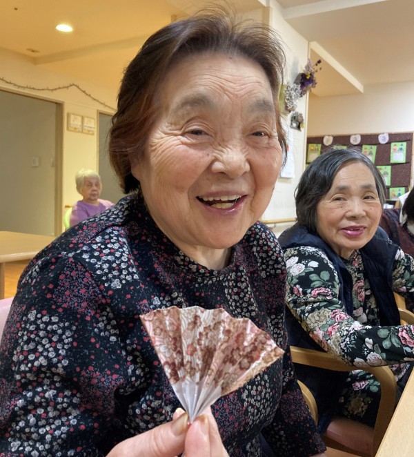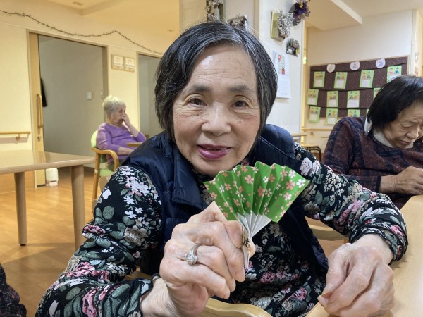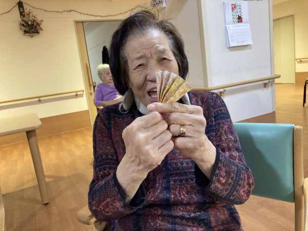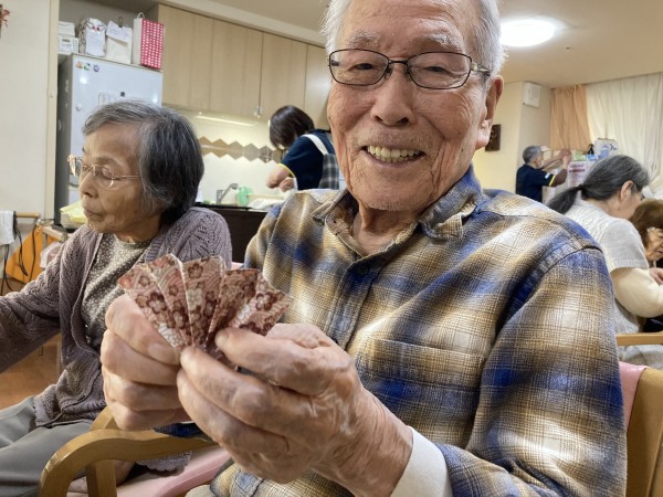 今月の折り紙レクは、和柄の折り紙で【扇子】を作りました♪