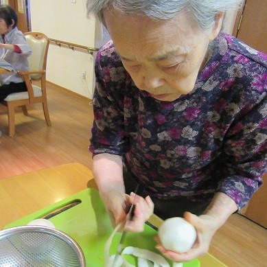 グループホームかたくりの里六郷では入居者さんと一緒に食事作りを行っています。