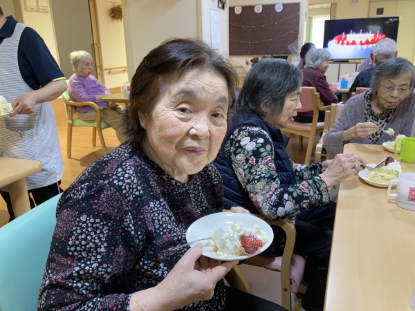 皆さんでお祝いの歌を歌った後に、ケーキを美味しくいただきました♪