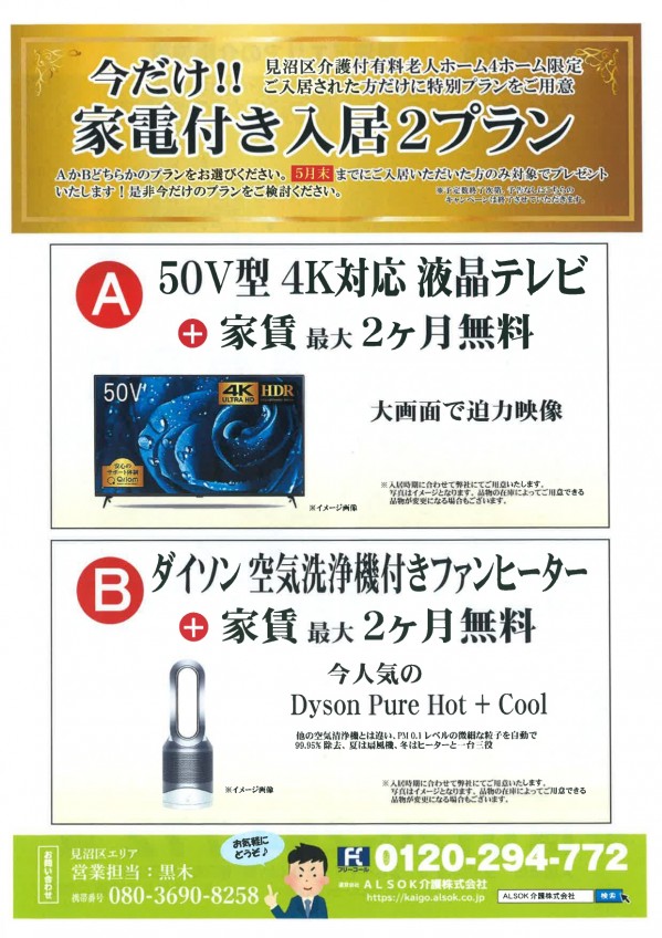 ALSOK介護株式会社【今だけ!】見沼区介護有料老人ホーム4ホーム限定キャンペーン!ご入居者様募集中!!【家電付き入居プラン!】