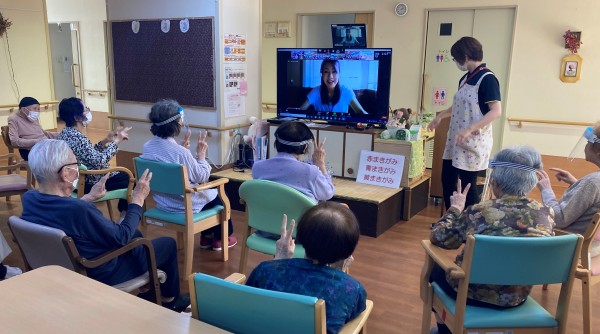 音声トラブルがあり、聞き取りづらいところもありましたが、西尾久のご入居者様は慌てず騒がず、太田先生の動きにしっかり合わせておりました。