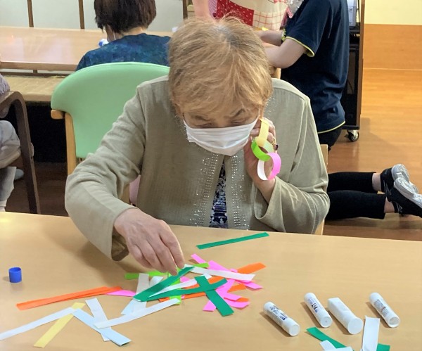 今回は吹き流しや貝の折り紙、輪っかも引き続き増産中~☆