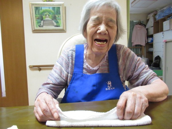 スタッフのエプロンを畳んだりほぐしたり( *´艸`)?