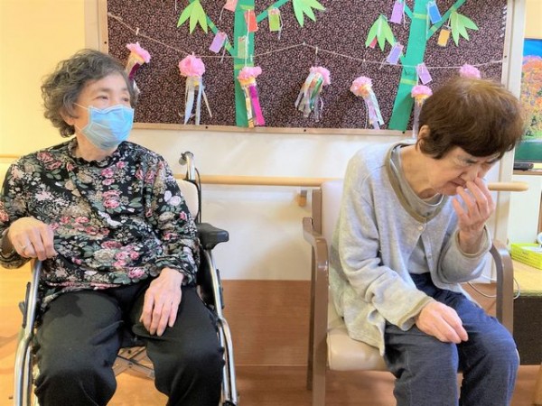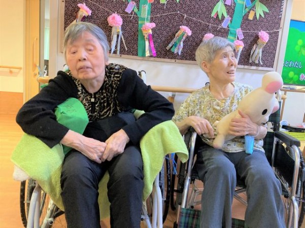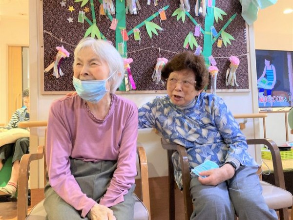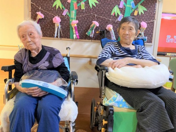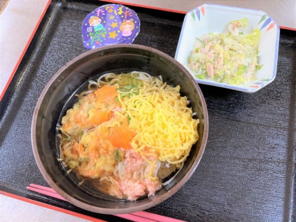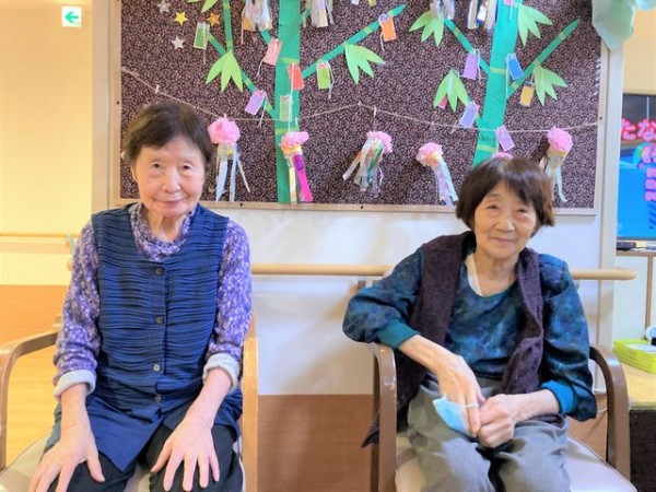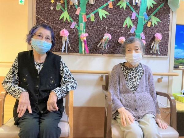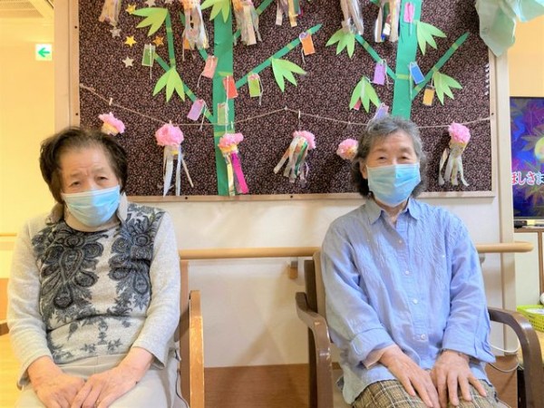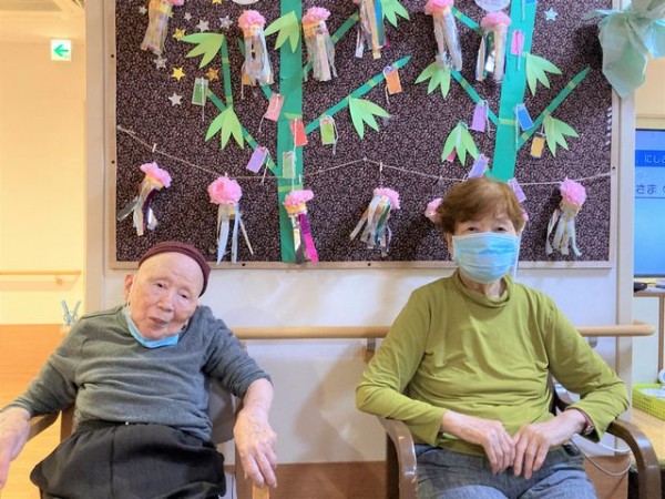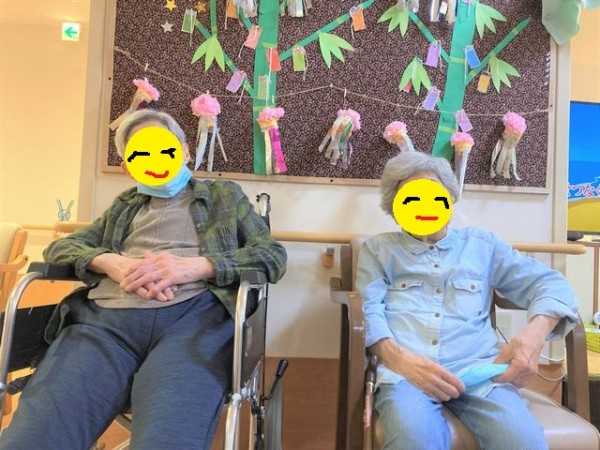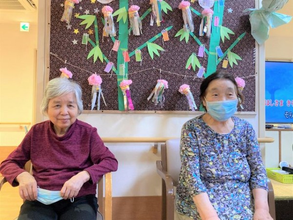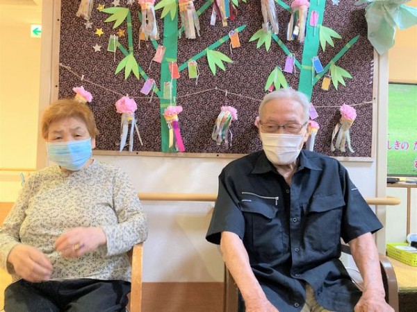 そして午後にはみんなで作った七夕飾りの前で記念撮影。