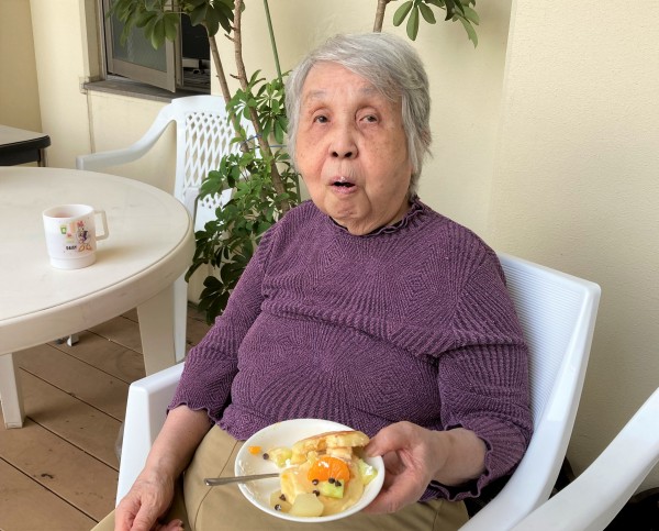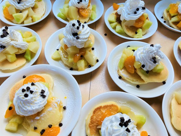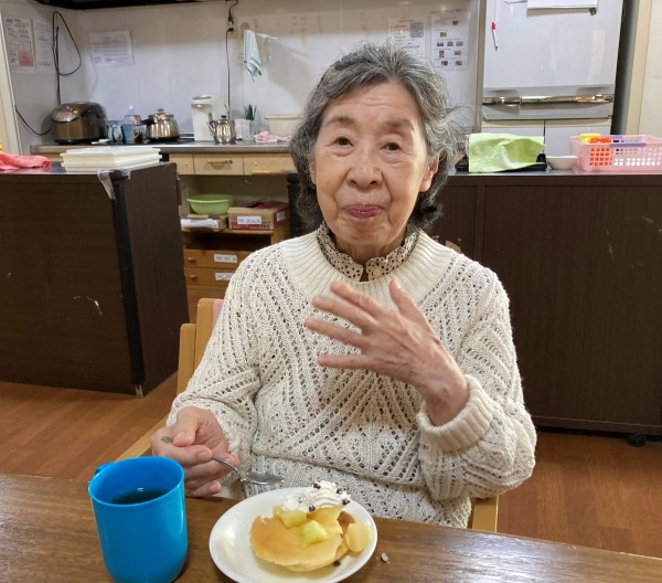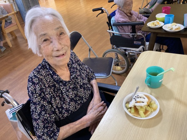 3名様の合同誕生日会では、パンケーキのフルーツ乗せを召し上がって頂きました♪