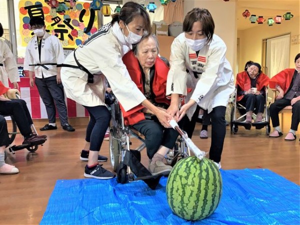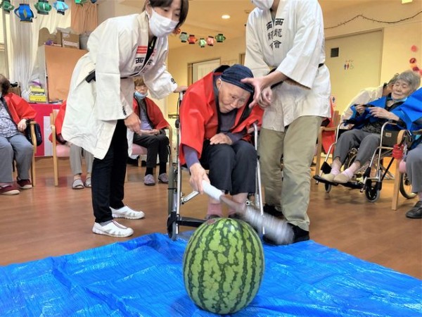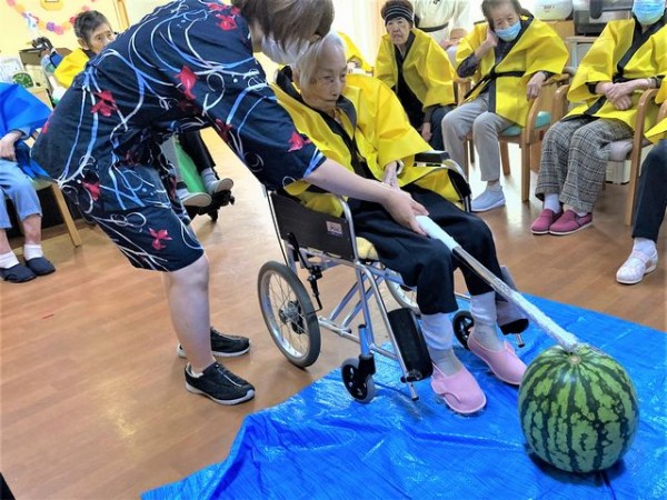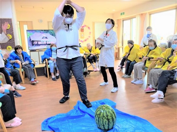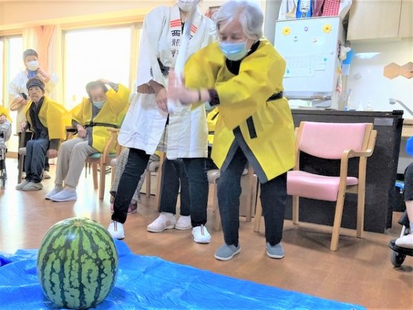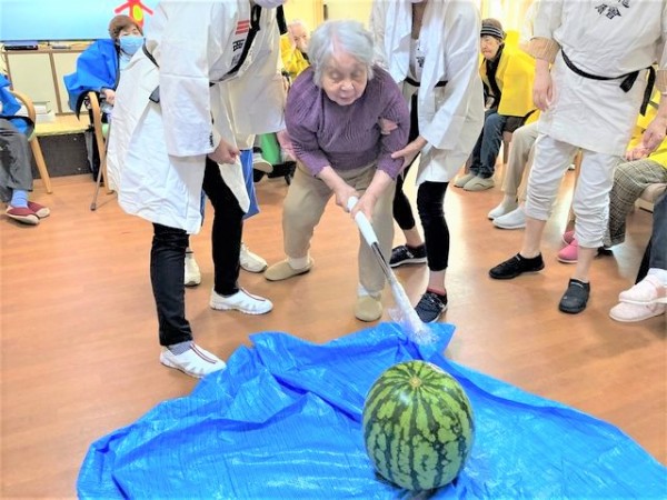 そして職員もスイカ割りに参加!