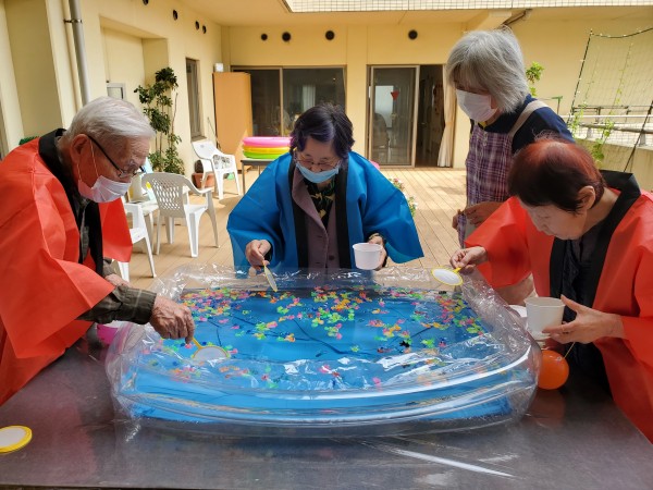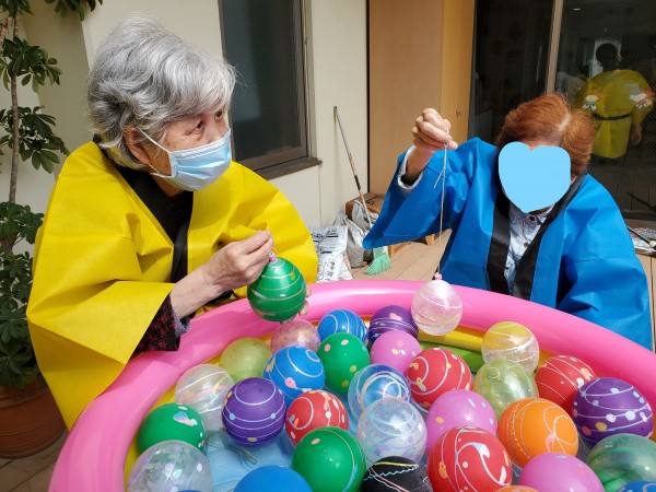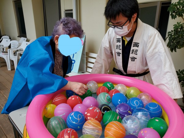 午後の部は、フロア対抗のゲーム大会を行いましたが、このときばかりはフロア関係なく、ご入居者様同士でわいわいと♪