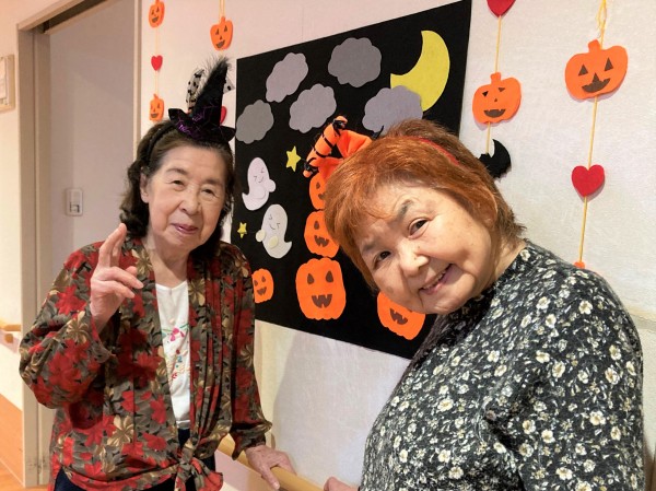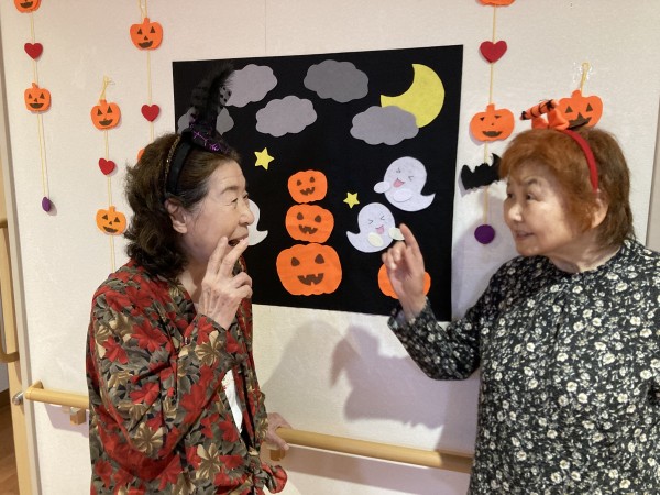 ハロウィンは外国のイベントですが、ご入居者様に少しでも雰囲気を味わって頂くために、今年はフェルトでの壁紙作りを行いました♪