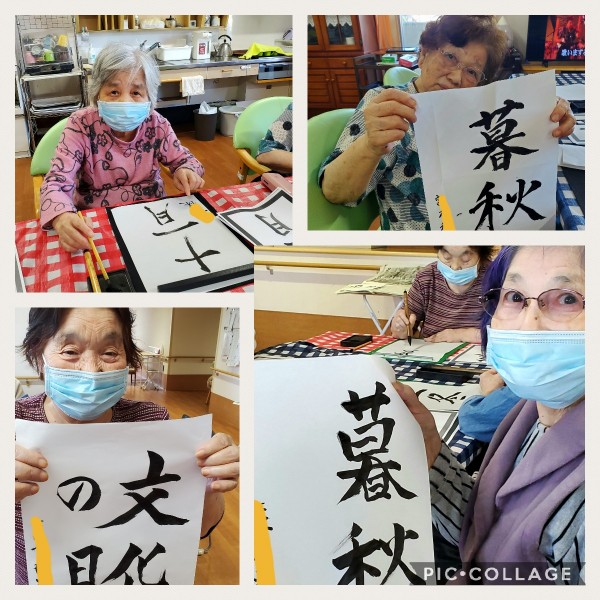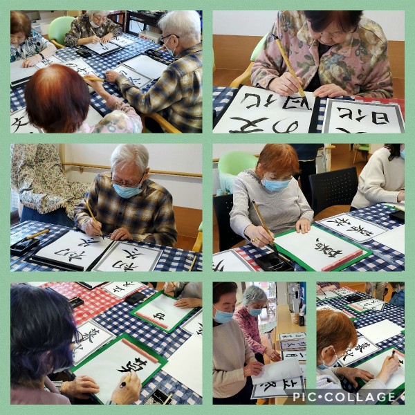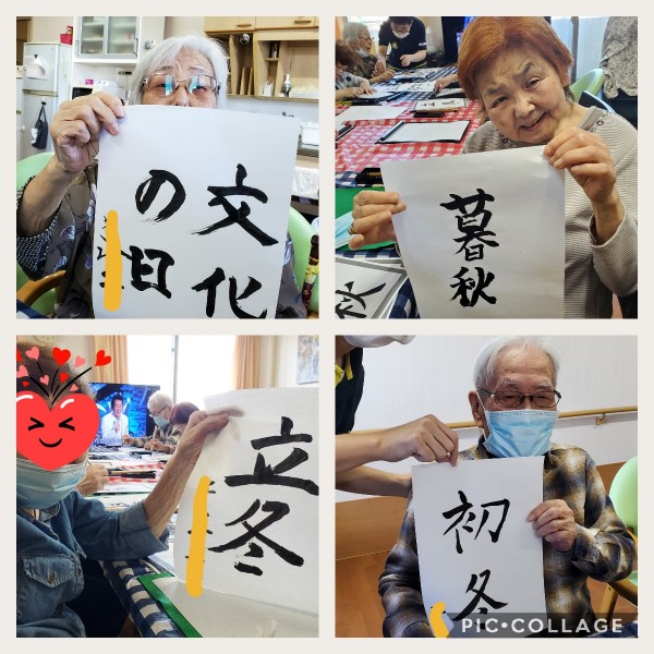 毎月ご入居者様には季節を感じる字を書いて頂いています。