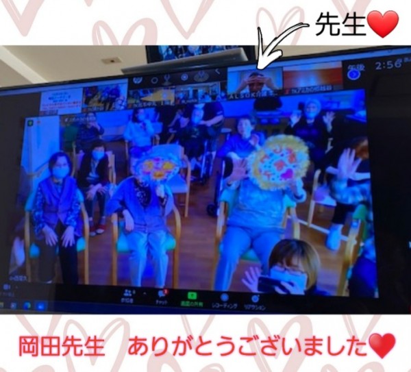 画面をアップにしてくださったので、岡田先生に向かってみなさんで手を振ると